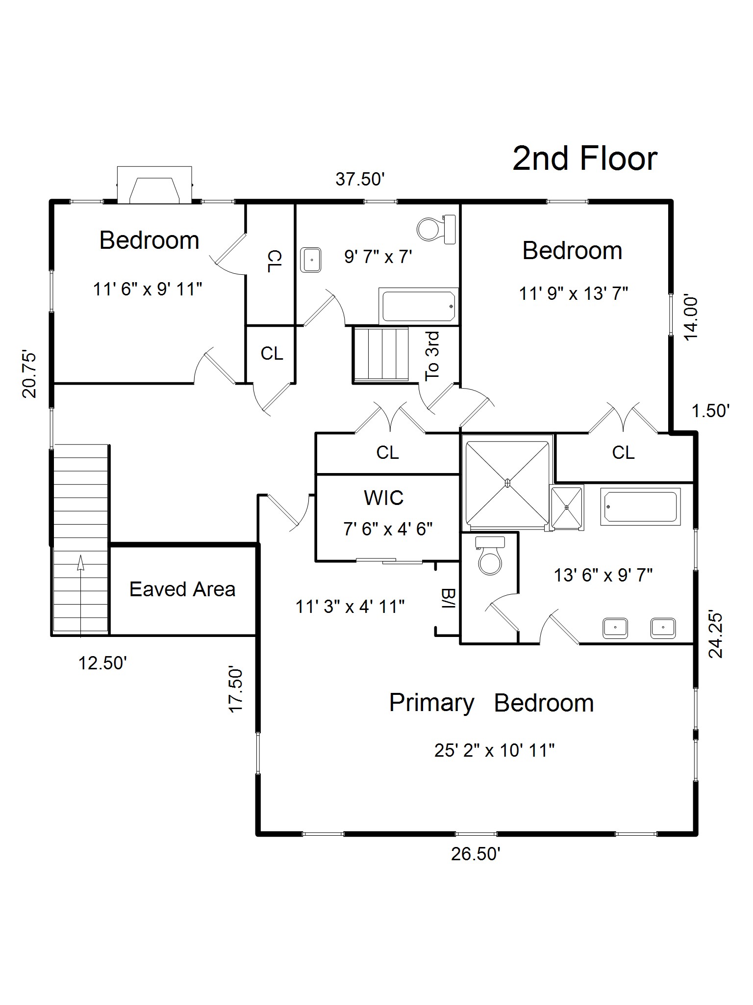 The expansive king-sized primary suite spans nearly the full width of the home and offers sunlight on all sides. Highlights include: