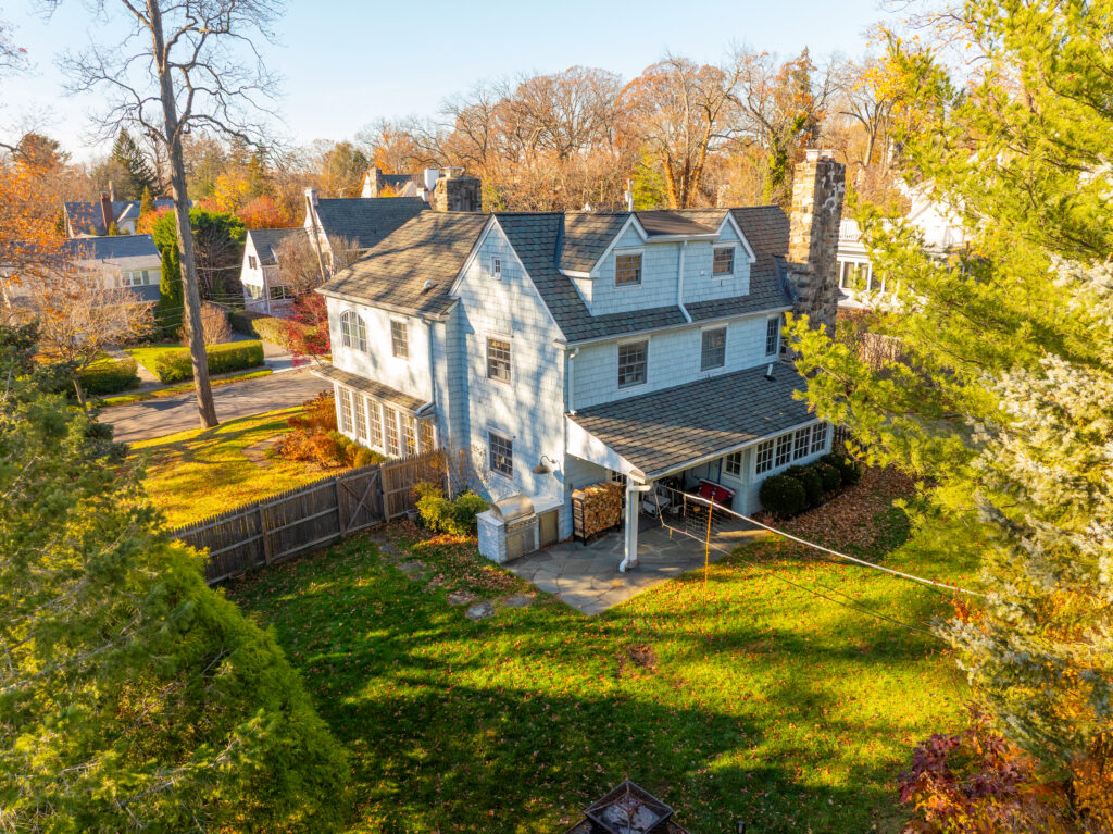 Outdoors, enjoy a fully fenced backyard with an expansive patio, dining areas, and a new outdoor kitchen featuring a Blaze gas grill and wine fridge. Lush landscaping surrounds the home, creating privacy and year-round beauty. The property also includes a newer roof (35+ year warranty), new 220-amp electrical service, a new boiler, central HVAC, built-in ceiling speakers in every room, and a French drain system. Not in a flood zone.