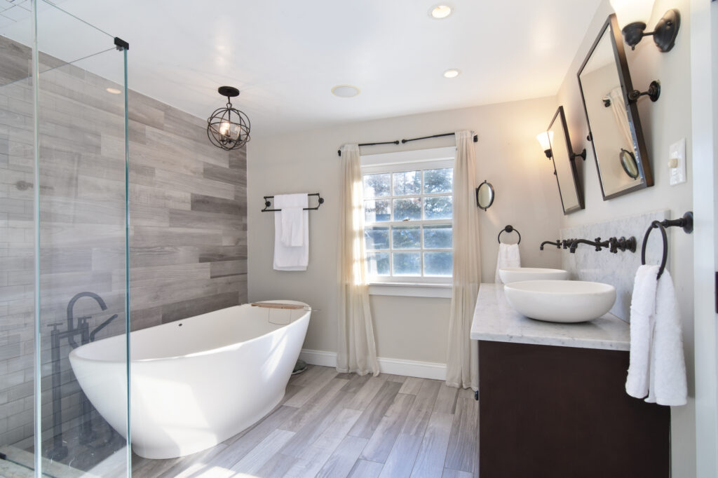 • A spectacular spa-inspired en-suite bath featuring a deep soaking tub, a marble walk-in rainfall shower, dual vanities, and designer finishes