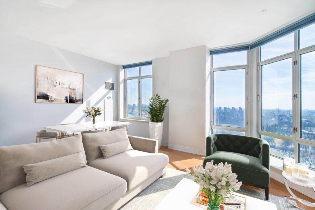 This sun-filled two-bedroom, two-and-a-half-bath luxury condominium features soaring ceilings, oversized east-facing windows, and sweeping views of Central Park from every room. A gracious entry gallery leads into an expansive living and dining area perfect for entertaining while showcasing dramatic park vistas.